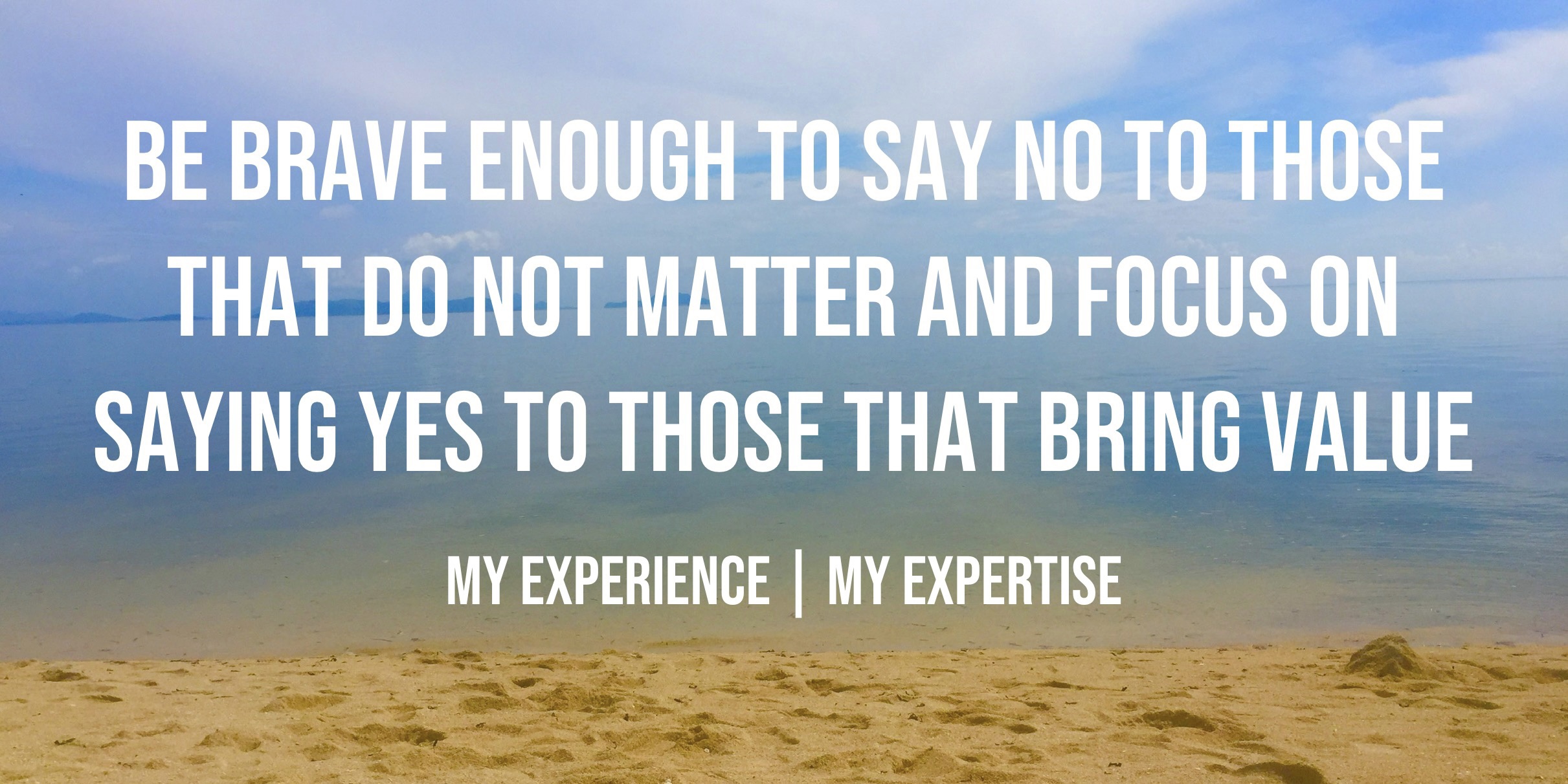 Now, what I am trying to say here is the moment you say NO (well, not disrespectful to your boss) to things around you (not just work) and only say YES to things and everyone that matters to you, personally, you will have a more peaceful life enjoying doing things that you put value on.